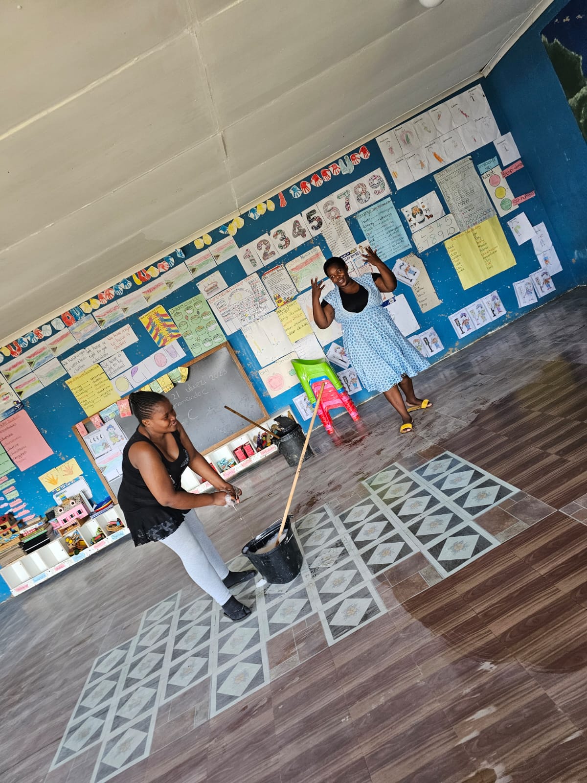 Finally we were able to lay vinyl tiles in the pre-school.